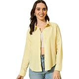 ₹550.00 (as of March 20, 2026 08:52 GMT +05:30 - More infoProduct prices and availability are accurate as of the date/time indicated and are subject to change. Any price and availability information displayed on [relevant Amazon Site(s), as applicable] at the time of purchase will apply to the purchase of this product.)Women's Striped Shirt, Yellow and White, Long Sleeve, Button Down, Casual Collared Trendy Shirt