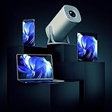 CAMLEIGH Mini Projector,Portable Projector,4K/200 Ansi Projector with 2.4/5G WiFi and Bluetooth.Auto Keystone Correction,40"-130" Screen,180ยฐ Flip,Android 11.0,Round Design Movie Projector(White)