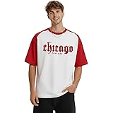 LEOTUDE Oversized Men Printed T-Shirt | Drop Shoulder Raglan Sleeve | Round Neck | White