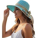 ₹337.00 (as of March 3, 2026 18:52 GMT +05:30 - More infoProduct prices and availability are accurate as of the date/time indicated and are subject to change. Any price and availability information displayed on [relevant Amazon Site(s), as applicable] at the time of purchase will apply to the purchase of this product.)PALAY® Straw Hat Sun Hats for Women, Wide Brim Beach Hat for Women Summer with Printed Ribbon, Fashion UV Protection Visor Cap, Packable Travel Hat for Ladies Gift