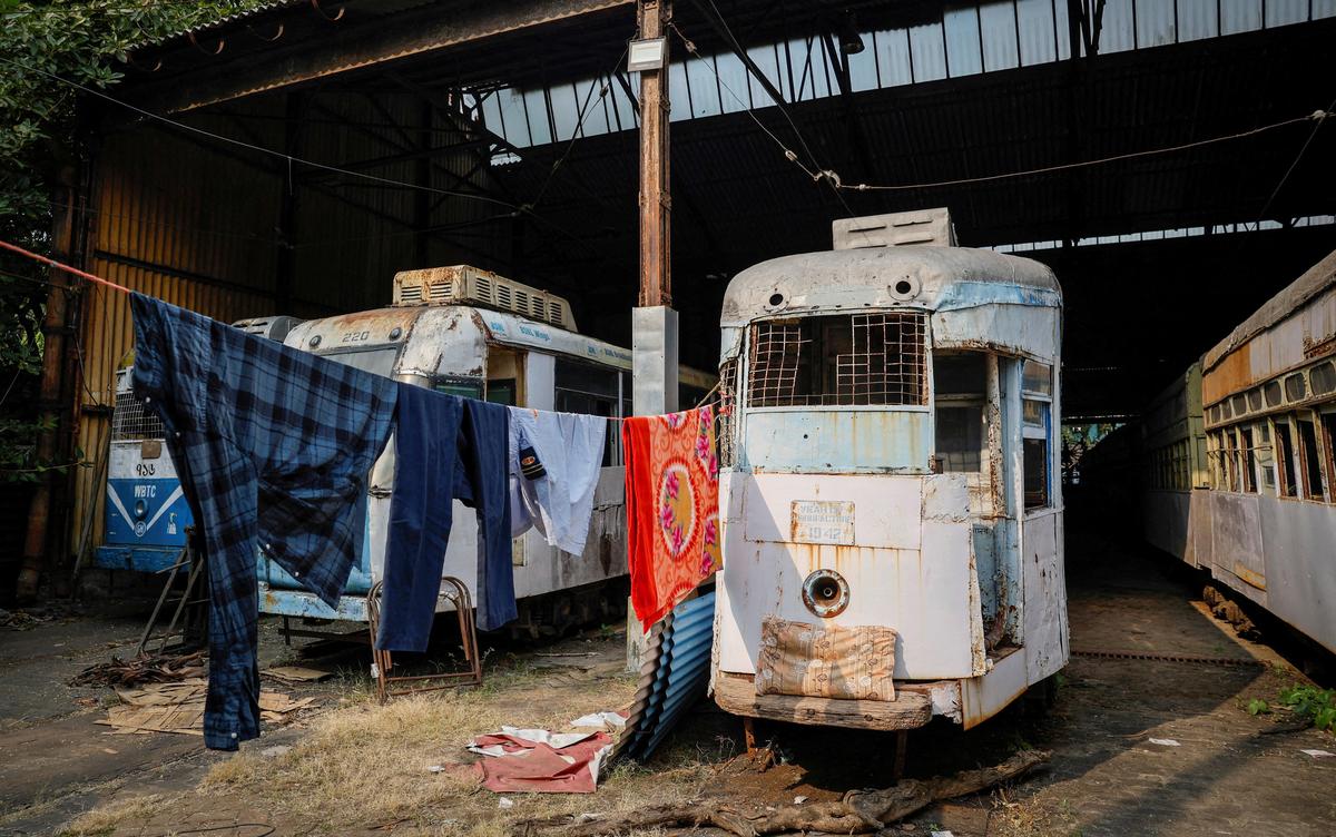 Old defunct trams seen inside a tram depot in Kolkata. The Calcutta High Court calling for preservation of the tram, has prohibited the sale of tram assets.