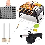 (as of February 4, 2026 19:06 GMT +05:30 - More infoProduct prices and availability are accurate as of the date/time indicated and are subject to change. Any price and availability information displayed on [relevant Amazon Site(s), as applicable] at the time of purchase will apply to the purchase of this product.)Barbecue Grills - Foldable Charcoal Barbeque Grill With 10 Skewers, 2 Spatula & 1 Air Blower | Outdoor bbq grill tools for Camping Hiking Picnics Traveling - Stellar Black